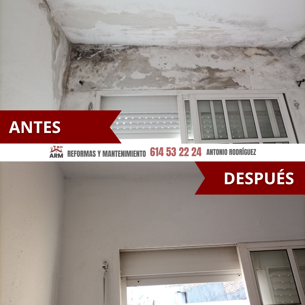 Reparación de techos y paredes con humedades sobre ventanas en Cádiz