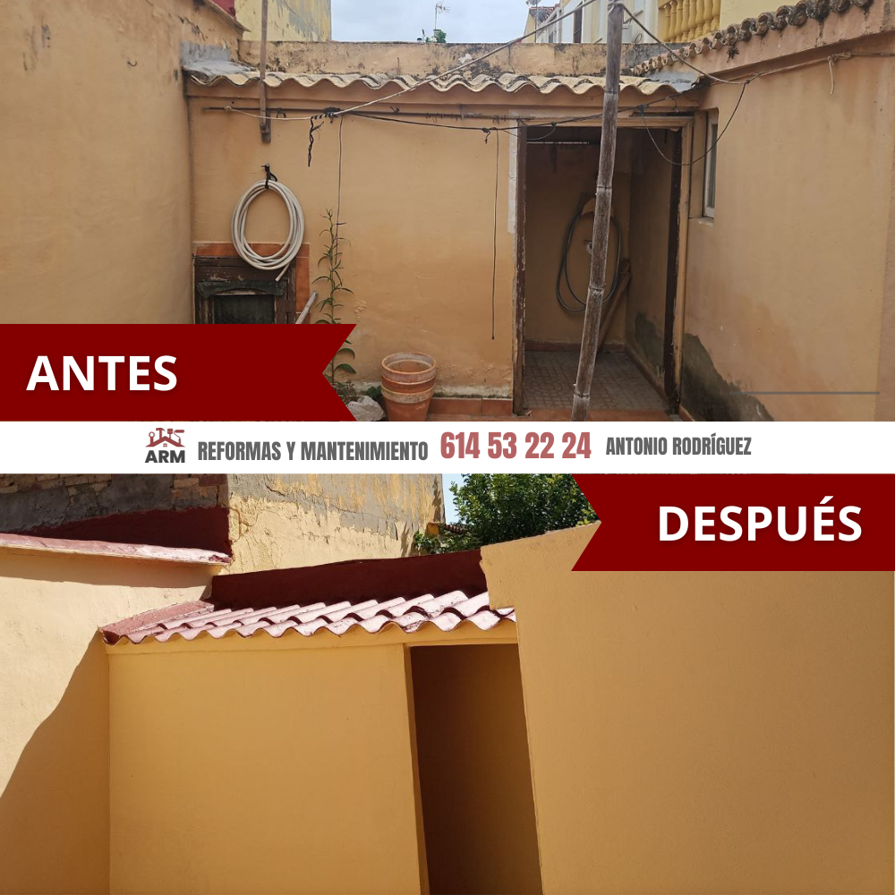 Reparación de paredes de patio e impermeabilización de techo contra humedades en Jerez